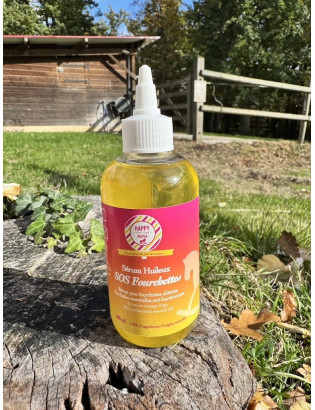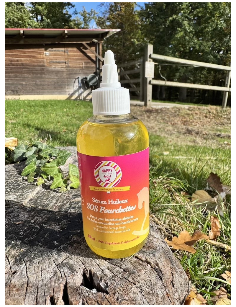 Sérum huileux riche en huiles végétales et en huiles essentielles antifongiques et antibactériennes destiné à protéger et assainir les fourchettes abîmées ou pourries.