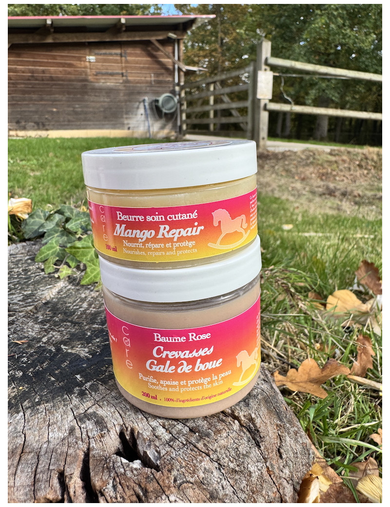 Le premier Baume Rose à la texture fondante et à l'odeur subtil d'orchidée pour prendre soin de votre cheval et de sa peau en toutes circonstances.