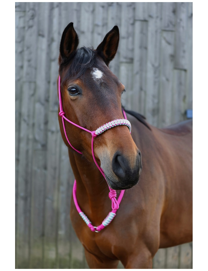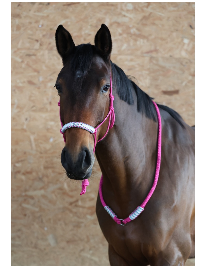 Licol éthologique édition Pink Limited, tressé à la main. Un équipement indispensable pour allier précision et progression dans l'éducation de votre cheval. Le tressage plat offre un véritable confort pour votre cheval.