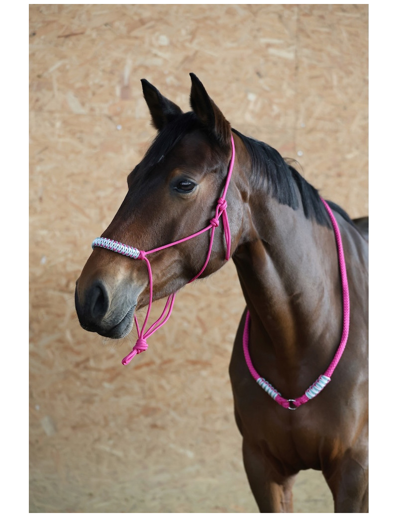 Licol éthologique édition Pink Limited, tressé à la main. Un équipement indispensable pour allier précision et progression dans l'éducation de votre cheval. Le tressage plat offre un véritable confort pour votre cheval.